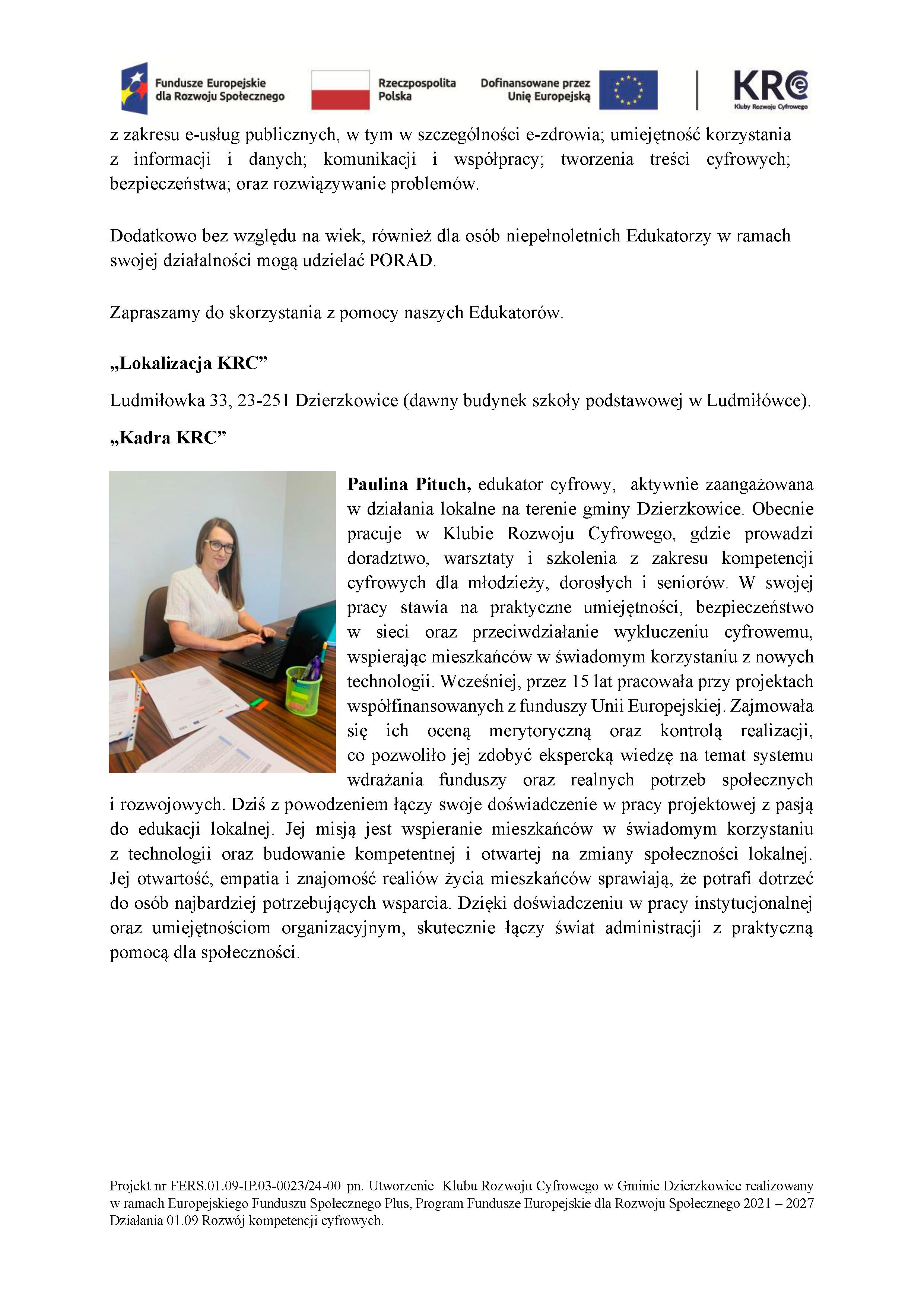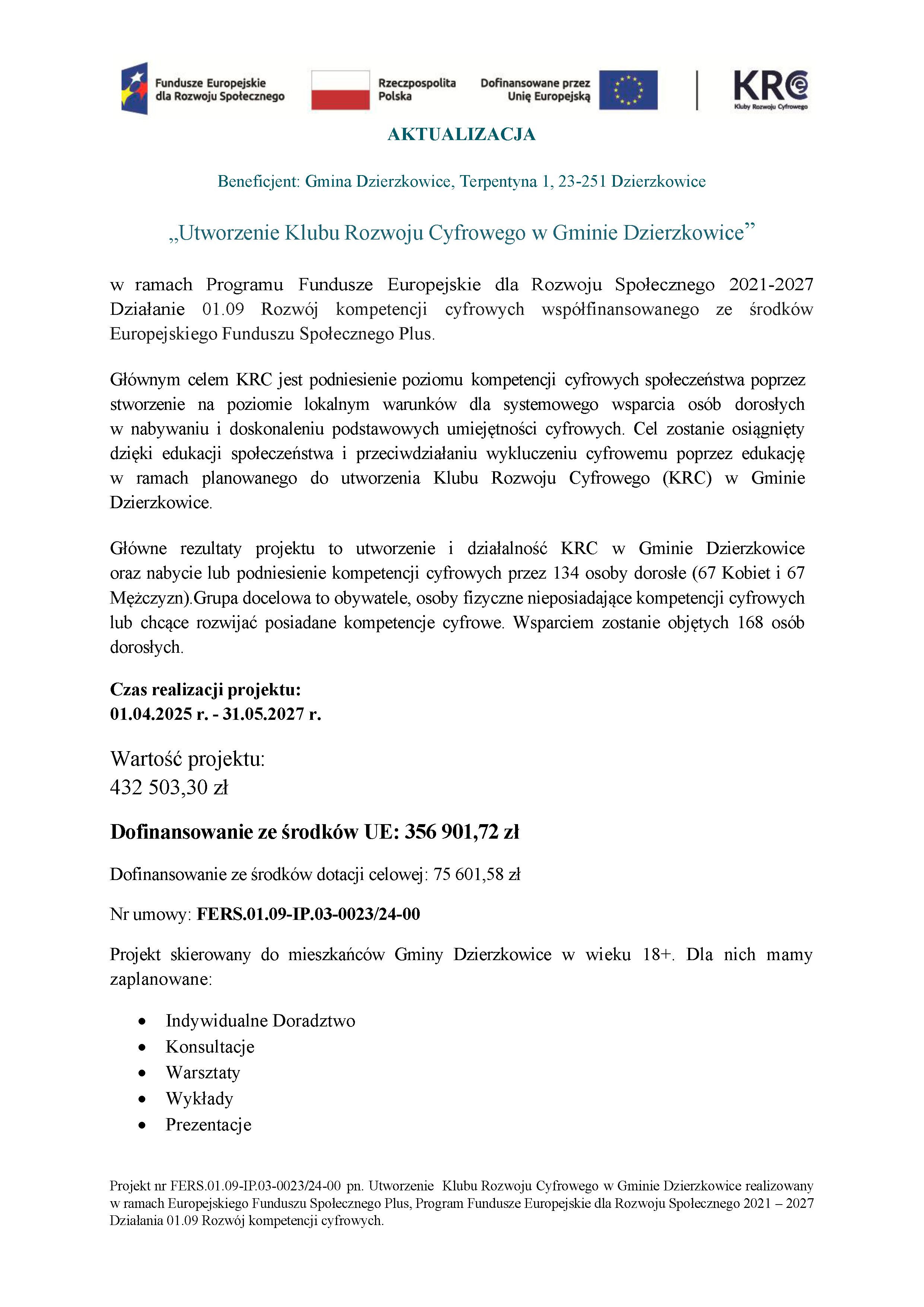 AKTUALIZACJA „Utworzenie Klubu Rozwoju Cyfrowego w Gminie Dzierzkowice”