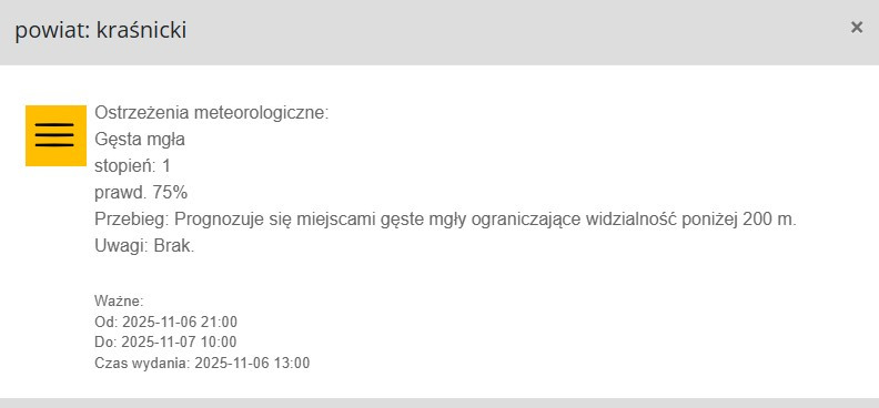 Ostrzeżenia meteorologiczne: Gęsta mgła