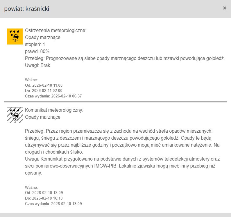 Ostrzeżenia meteorologiczne: Opady marznące stopień:...