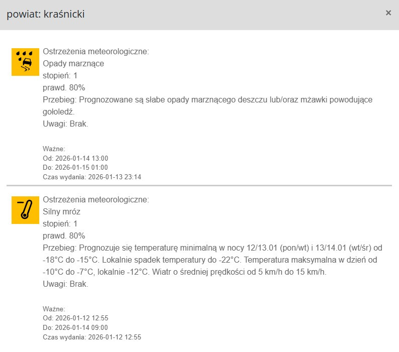 Ostrzeżenia meteorologiczne: opady marznące i silny mróz