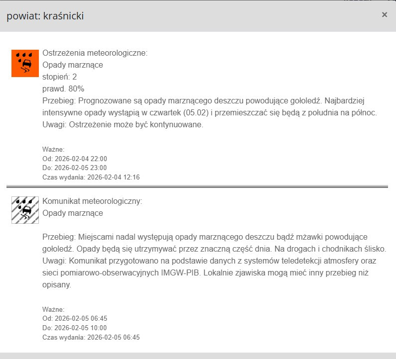 Ostrzeżenia meteorologiczne: Opady marznące stopień:...