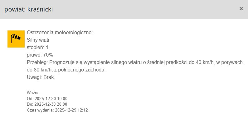 Ostrzeżenia meteorologiczne: Silny wiatr