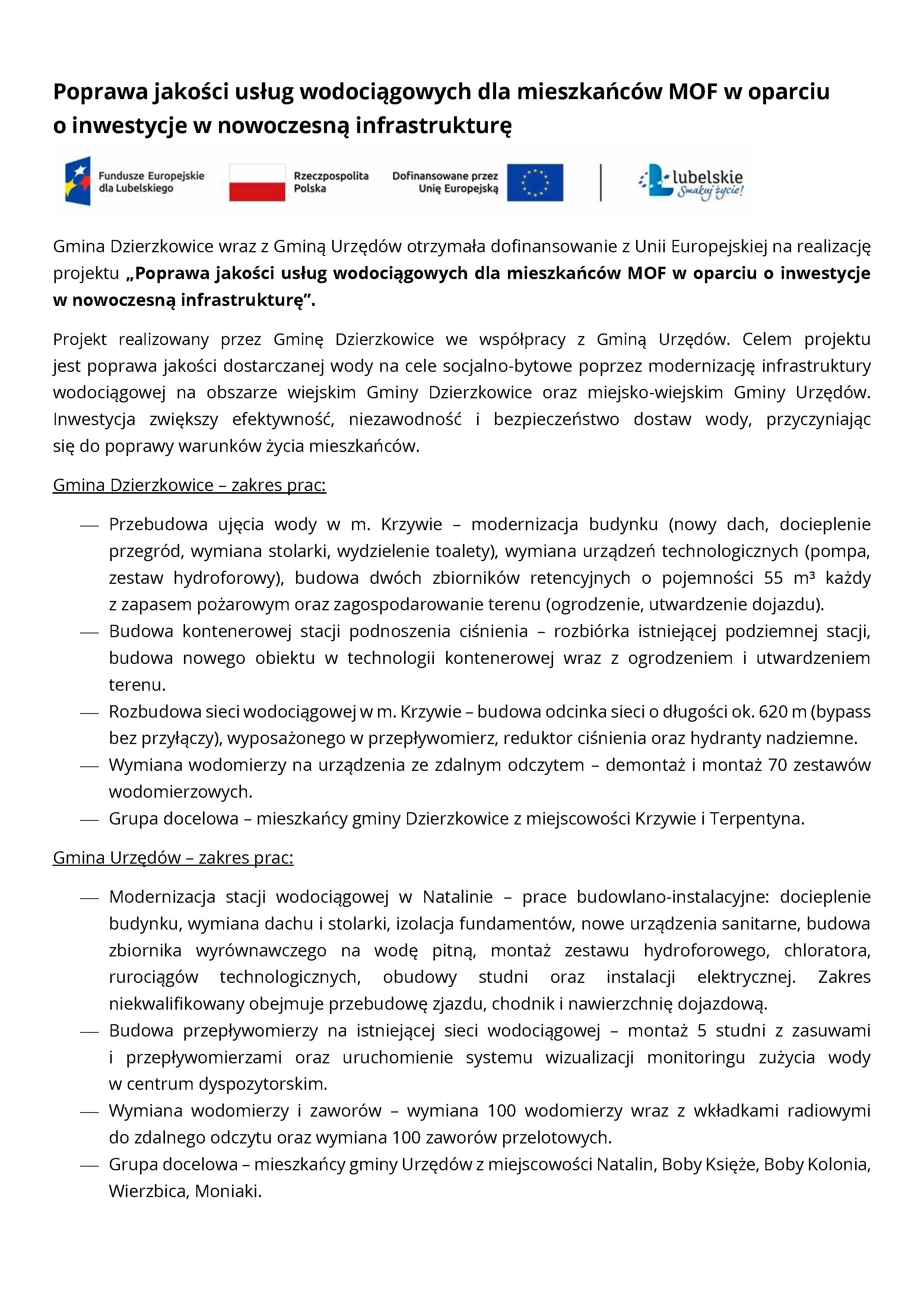 Poprawa jakości usług wodociągowych dla mieszkańców MOF w oparciu o inwestycje w nowoczesną infrastrukturę