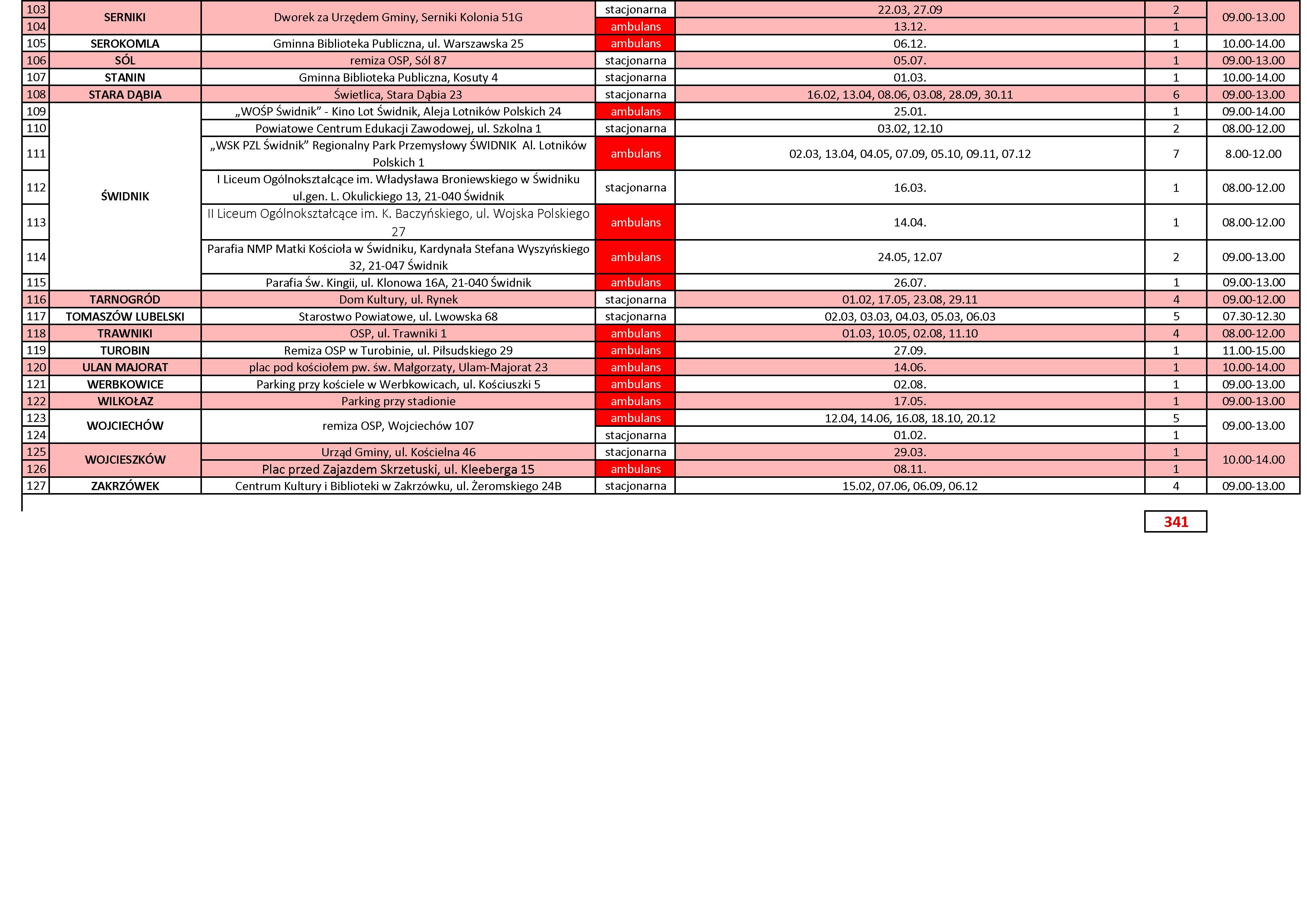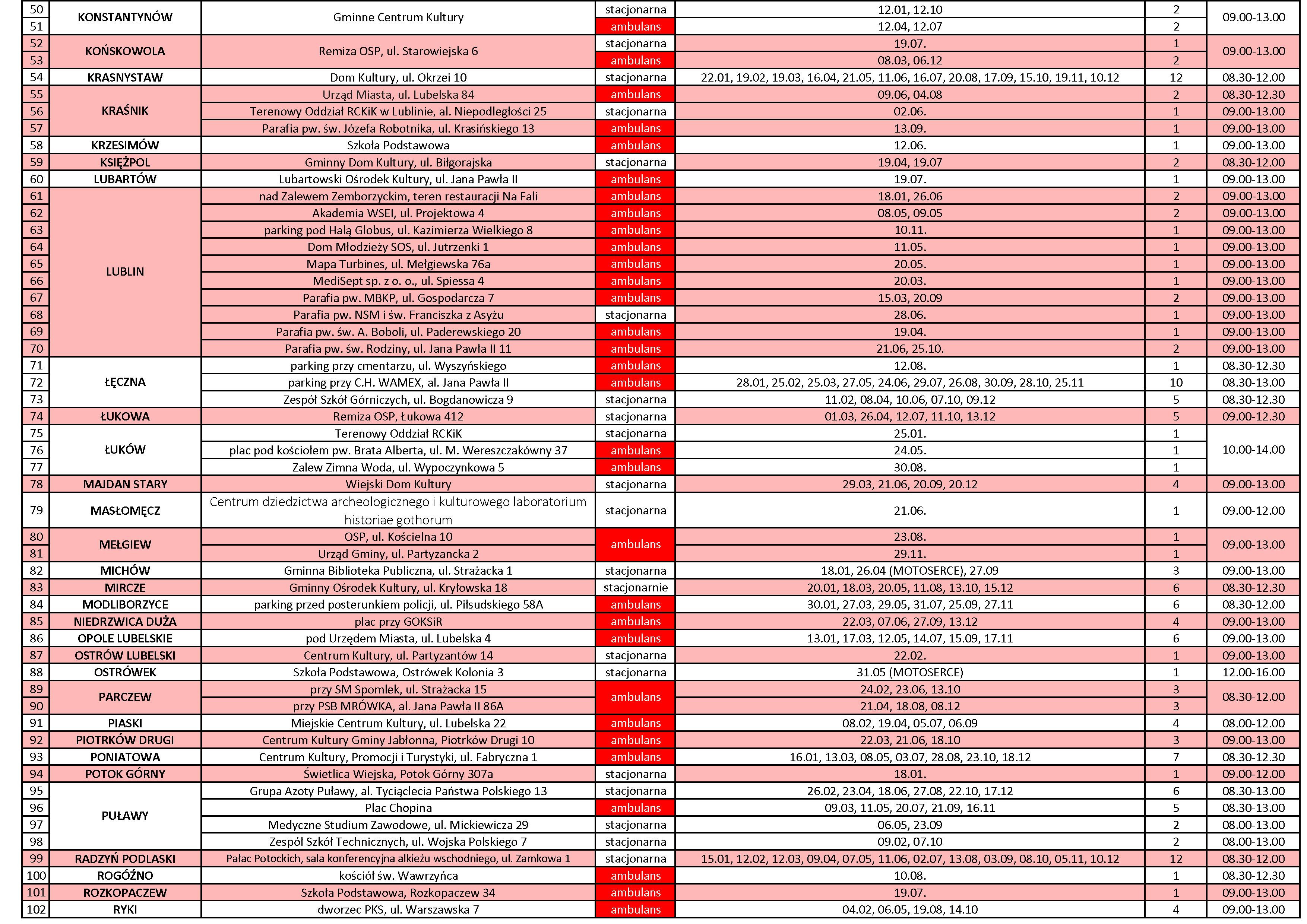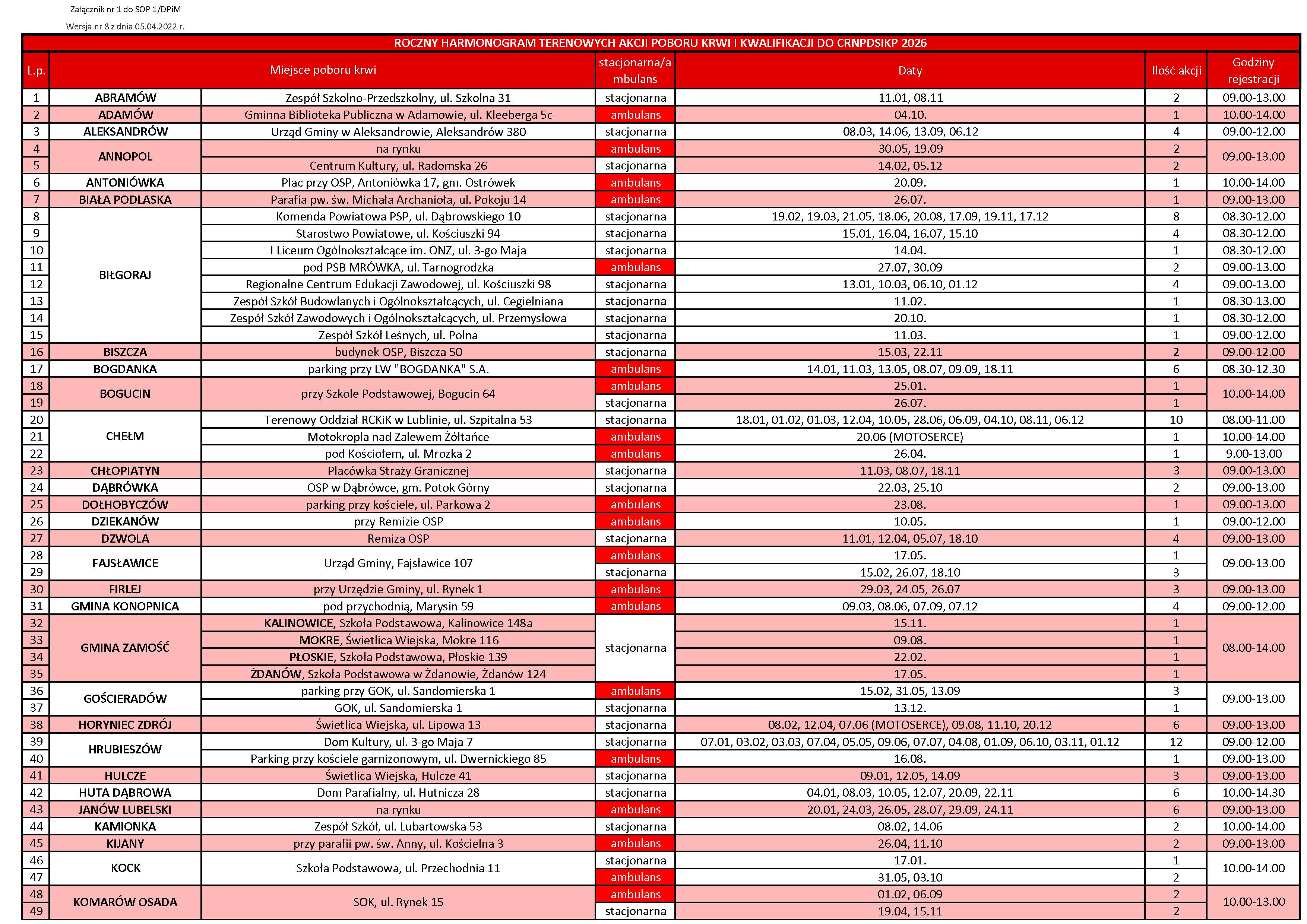 Terenowe akcje poboru krwi RCKiK Lublin 2026