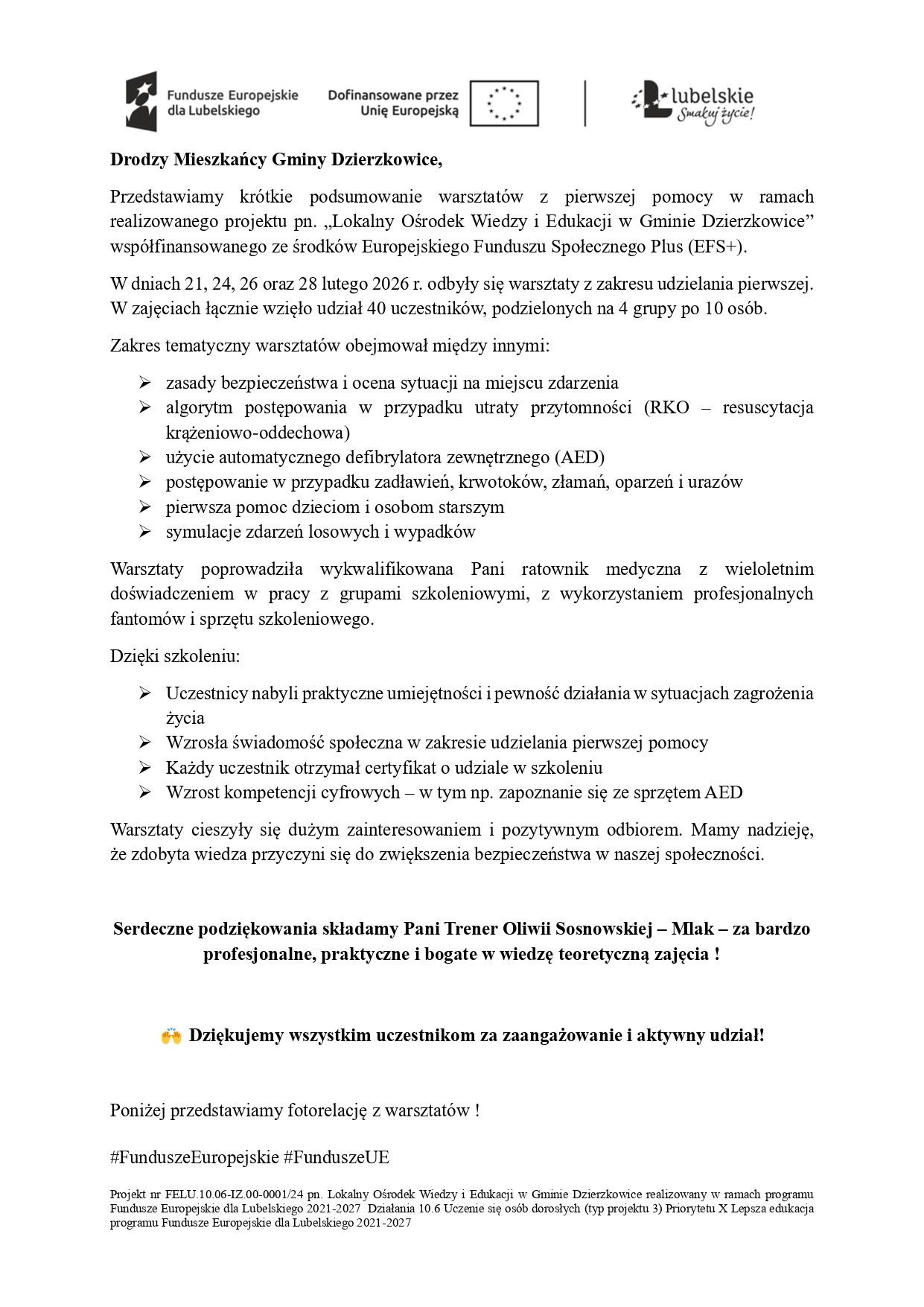 "Warsztaty z zakresu udzielania pierszej...
